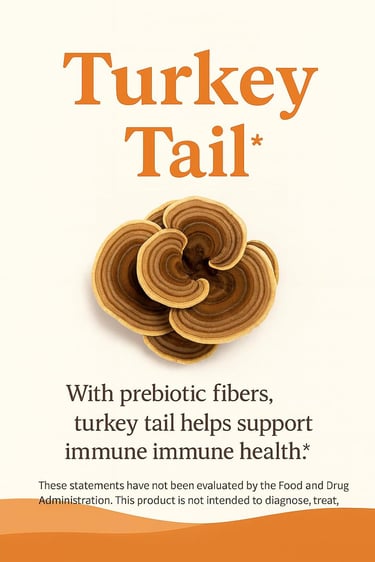 Immune & Stress Support Reishi & Turkey Tail mushrooms help balance stress, strengthen immune response, and support long-term vitality.