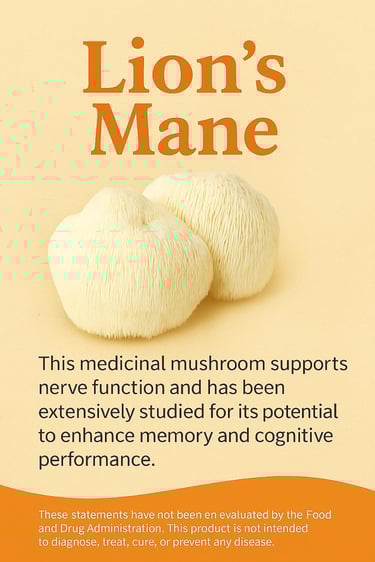 Supports Brain Health & Focus Powered by Lion’s Mane mushroom, traditionally used to promote cognitive function, memory, and clarity.